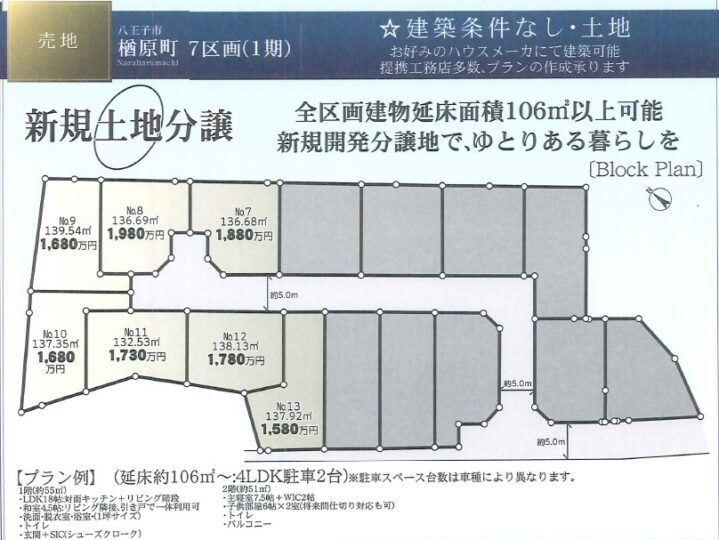 楢原町 土地 全7区画 1.580万円~1.980万円