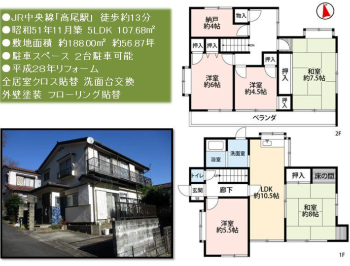 | 土地面積 | 188.00㎡ | 建物面積 | 107.68㎡ |